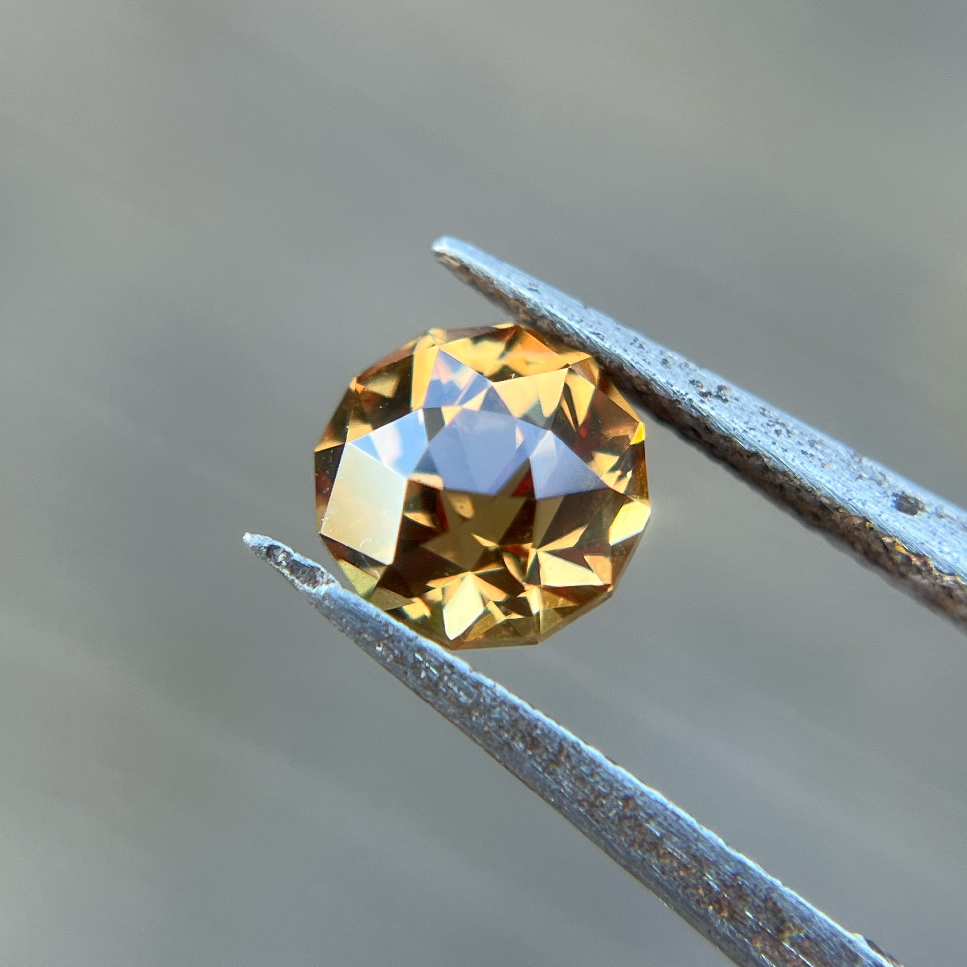 Gorgeous Imperial Garnet cut in a crisp round with a Portuguese style crown for some extra bling.