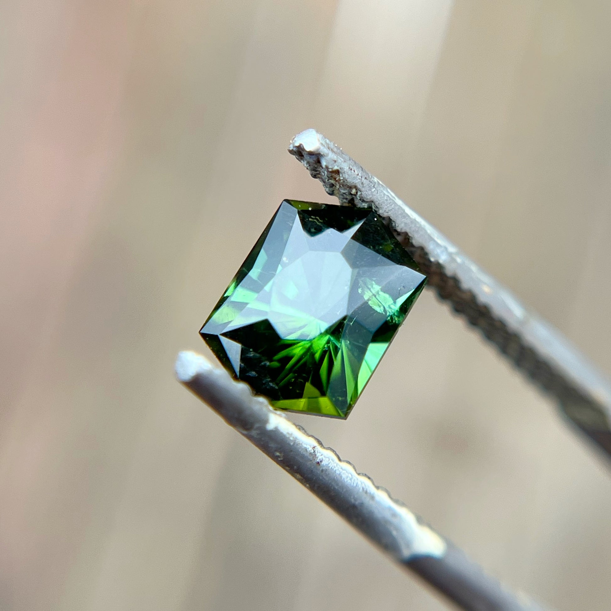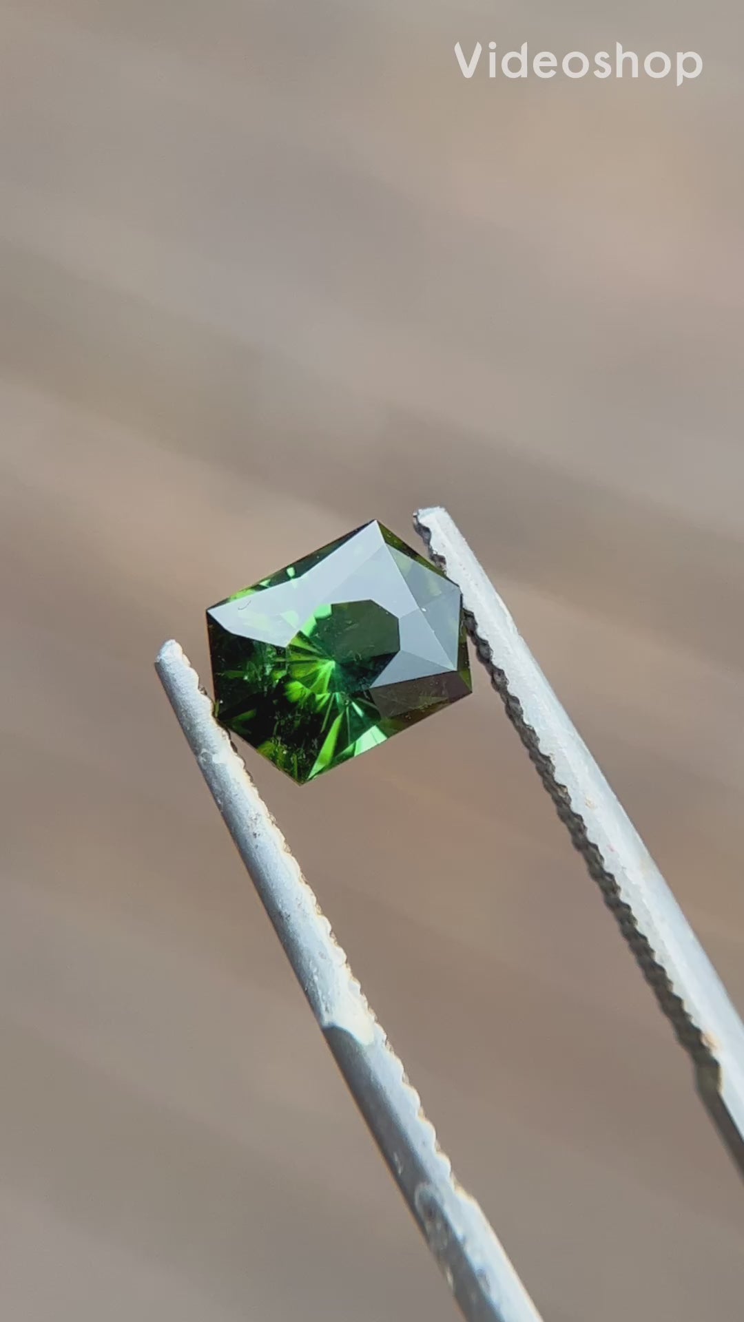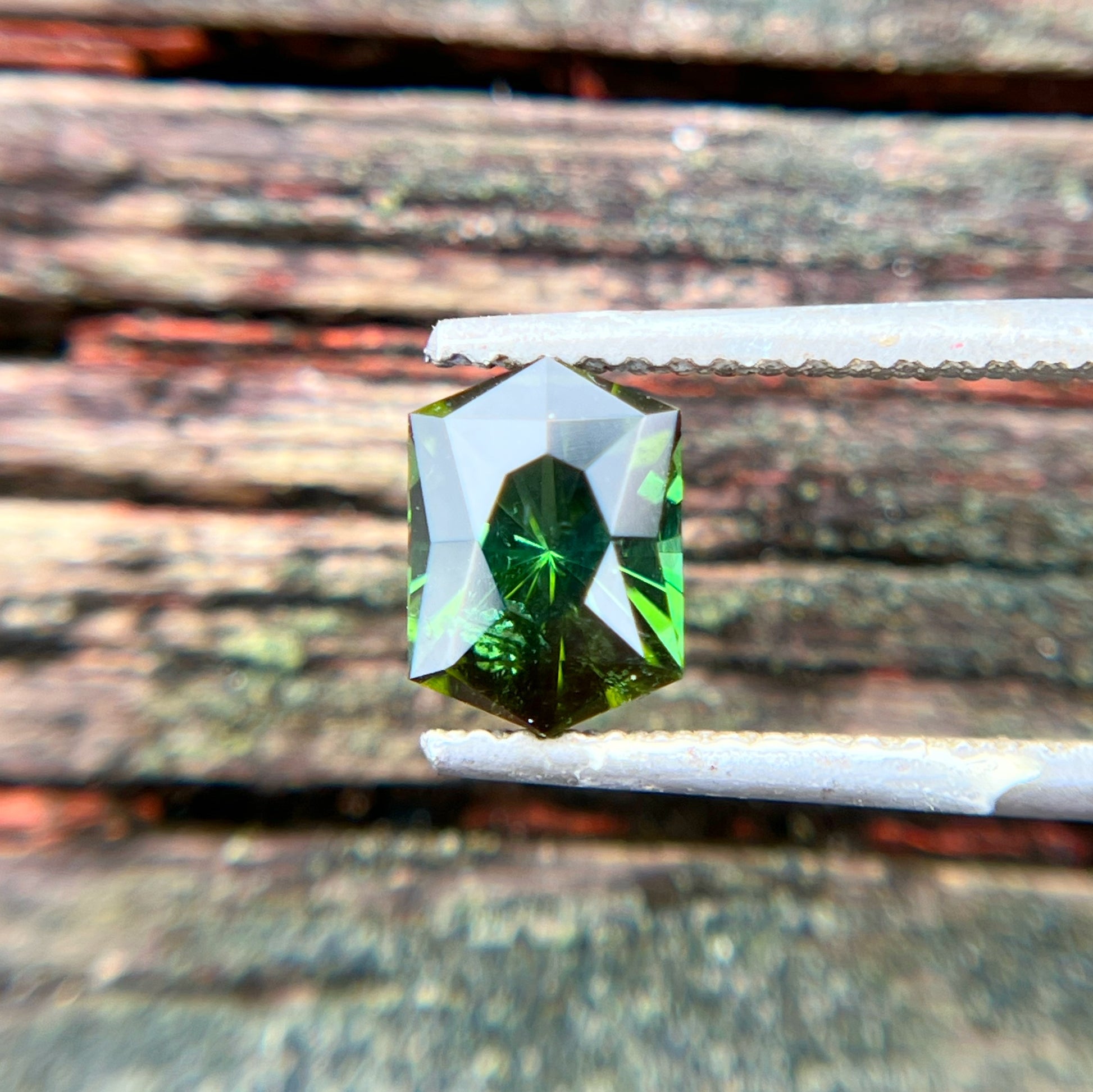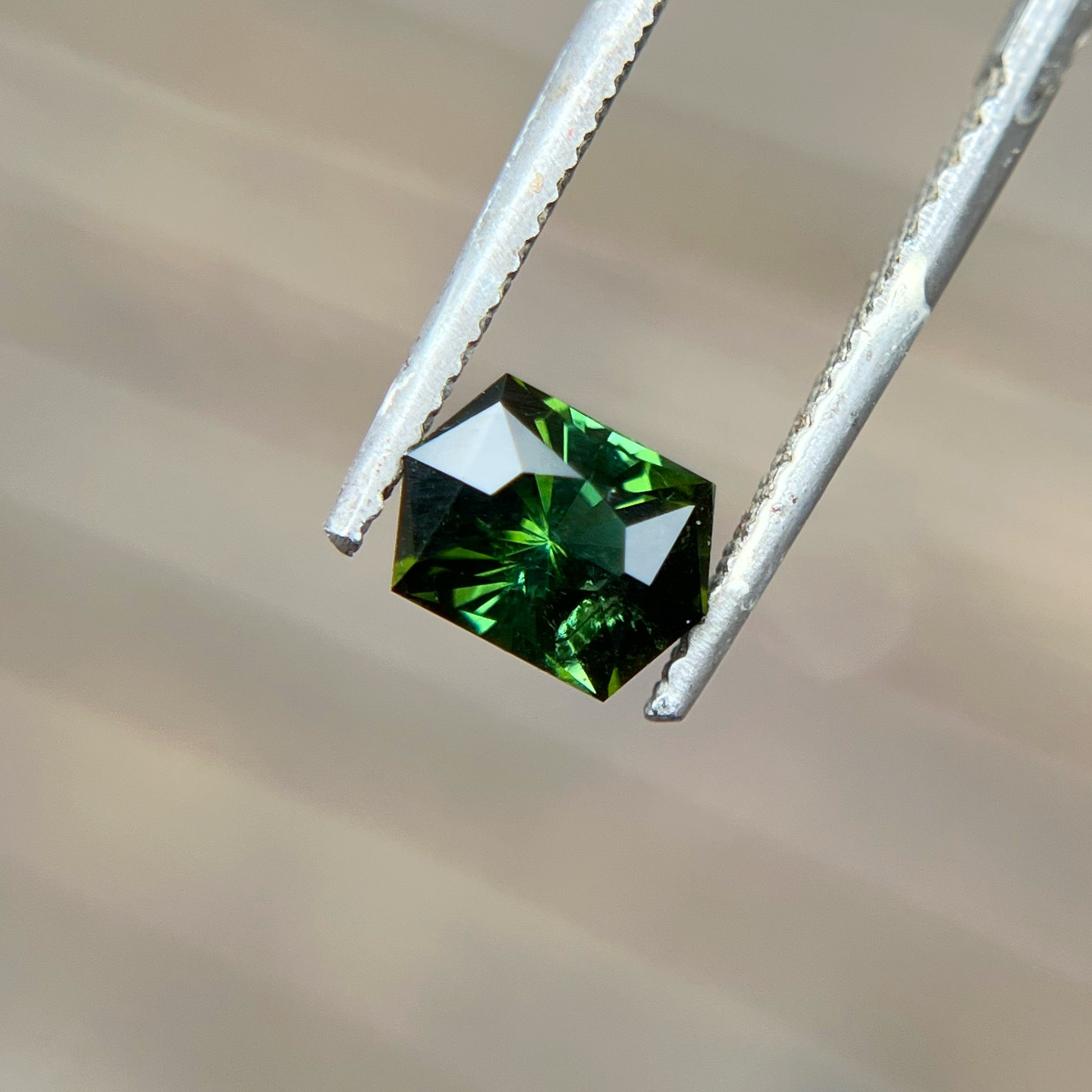 A chrome green tourmaline cut in a rupee design. Perfect center stone for a ring.
