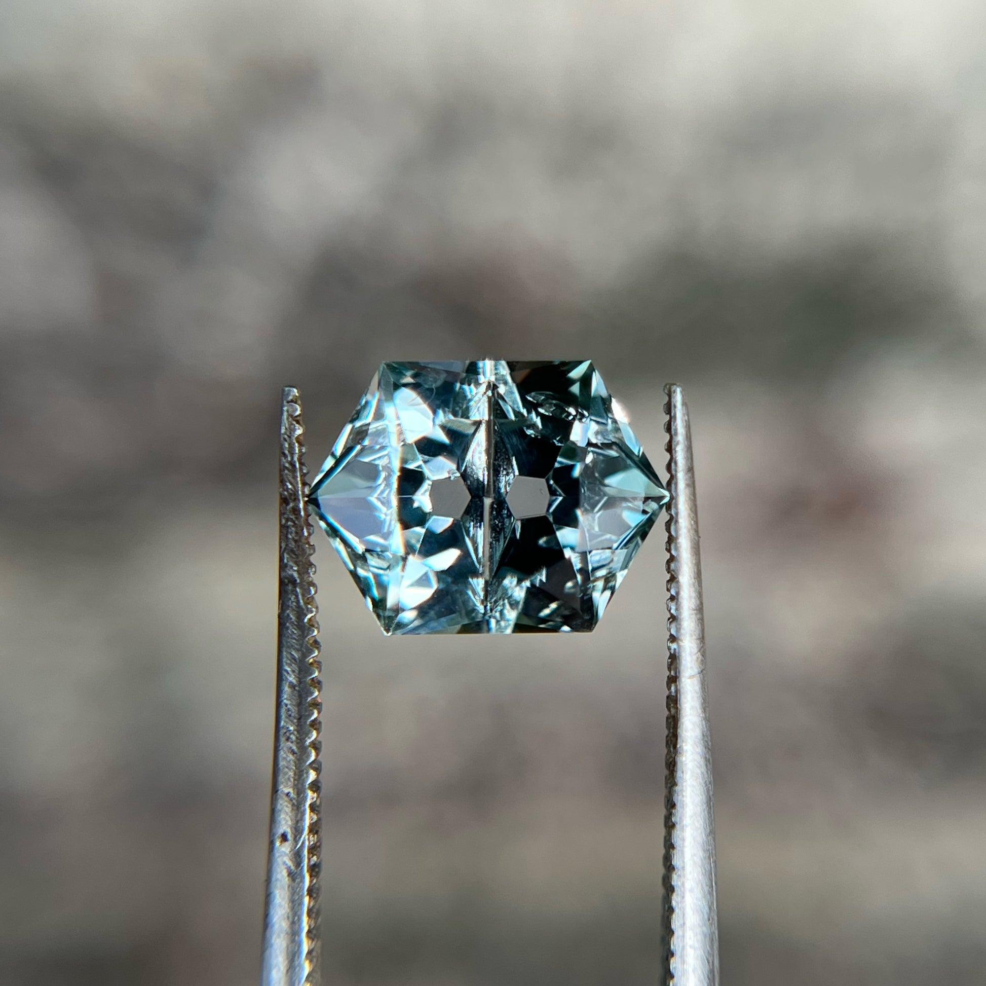 Unheated Montana Sapphire in a rupee shape with a fantasy cut pavilion, definitely an original piece, perfect for that engagement ring.