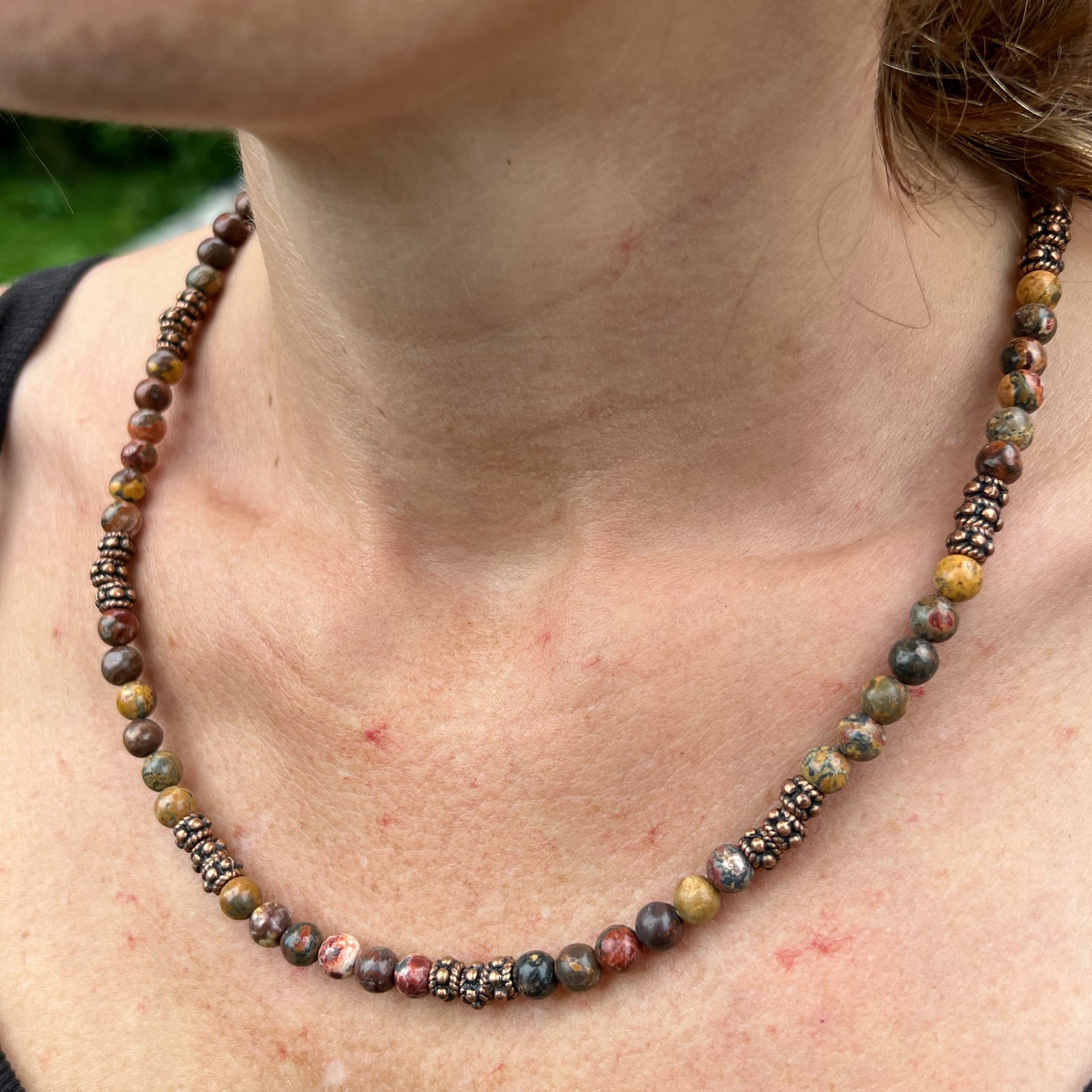 Cherry Creek Jasper with Copper Accents Beaded Necklace with Sterling Silver Clasp Jewelry