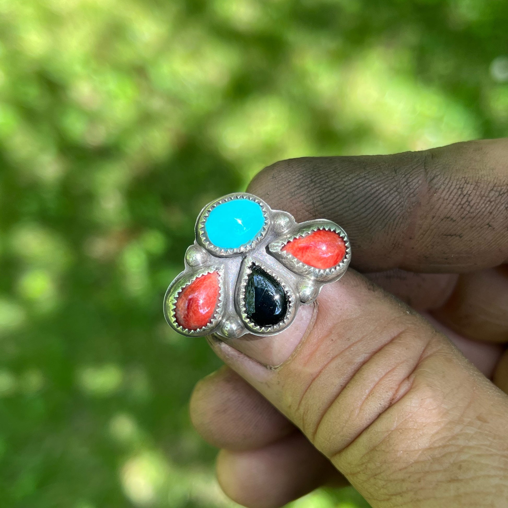 Turquoise, Red Spiny Oyster, and Onyx in Sterling Silver Ring Jewelry