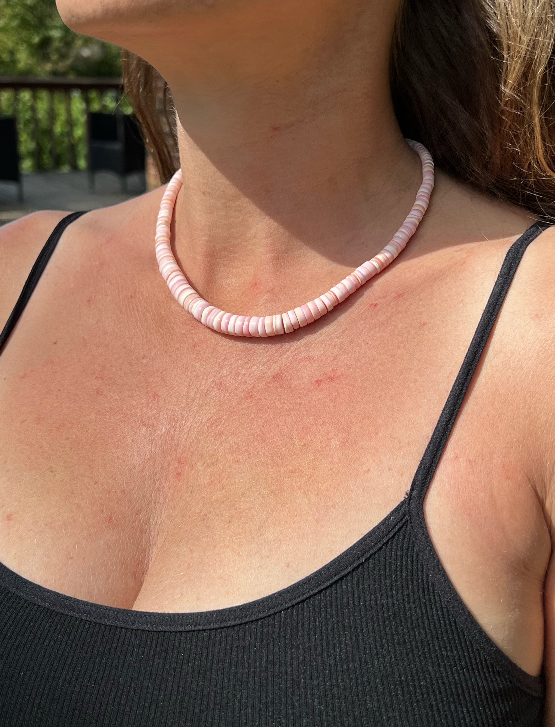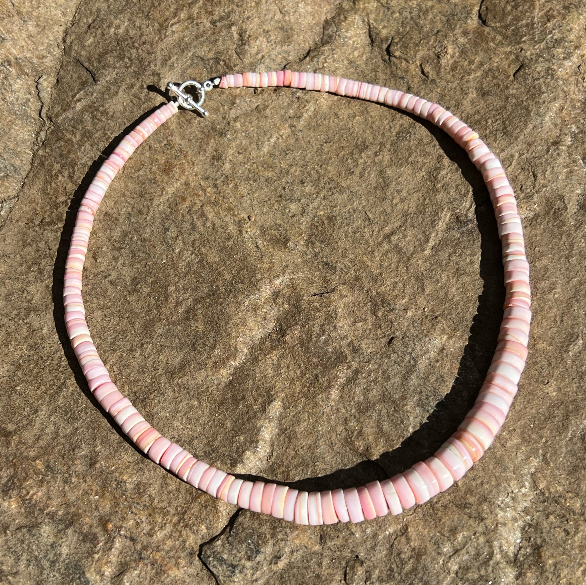 Graduated Pink Conch Beaded Necklace with Sterling Silver Clasp Jewelry