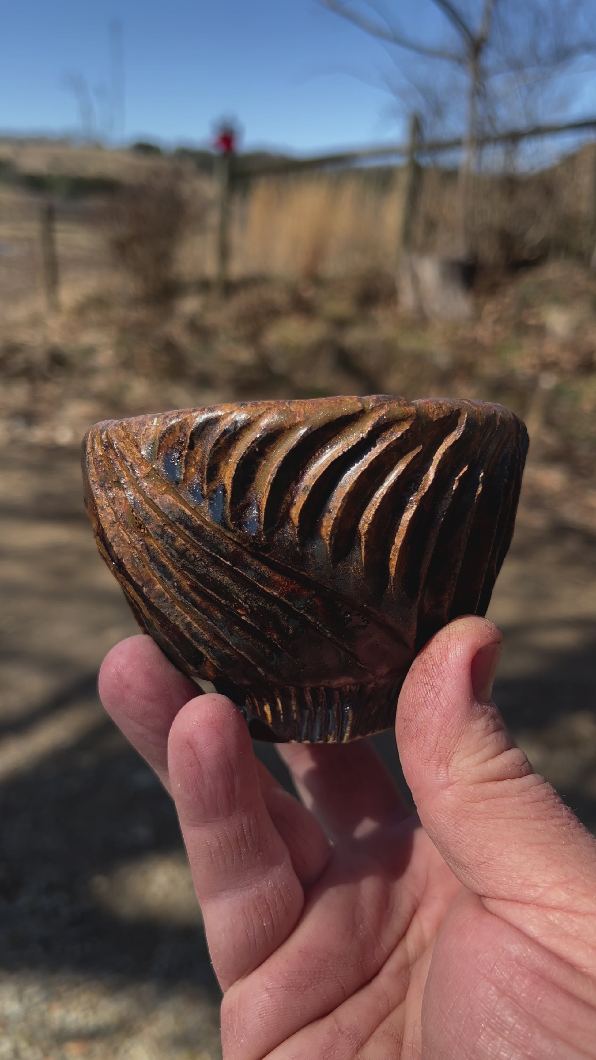 A hand carved yunomi teacup in my own glaze combination I call “Mordor” one of a kind piece!