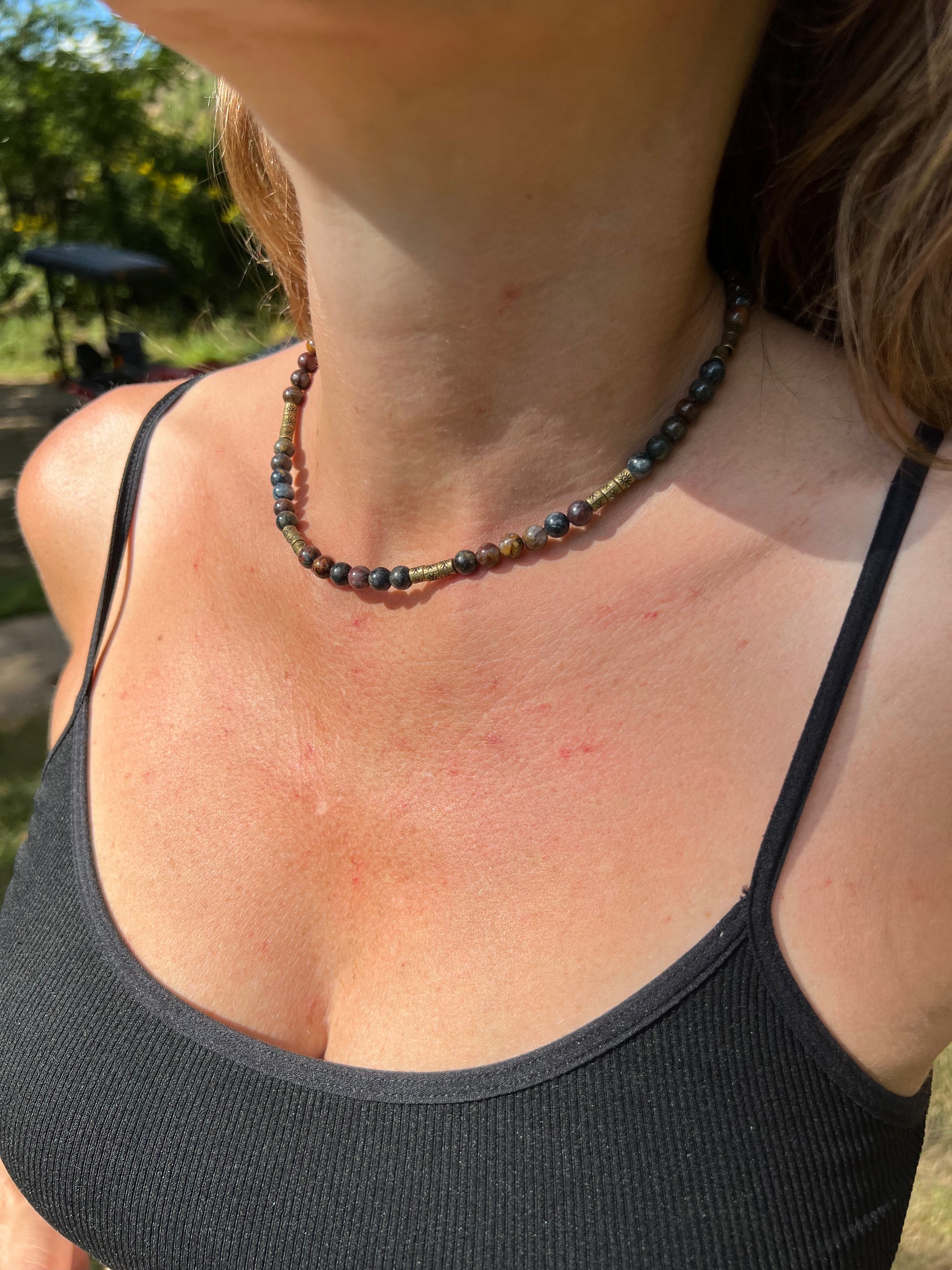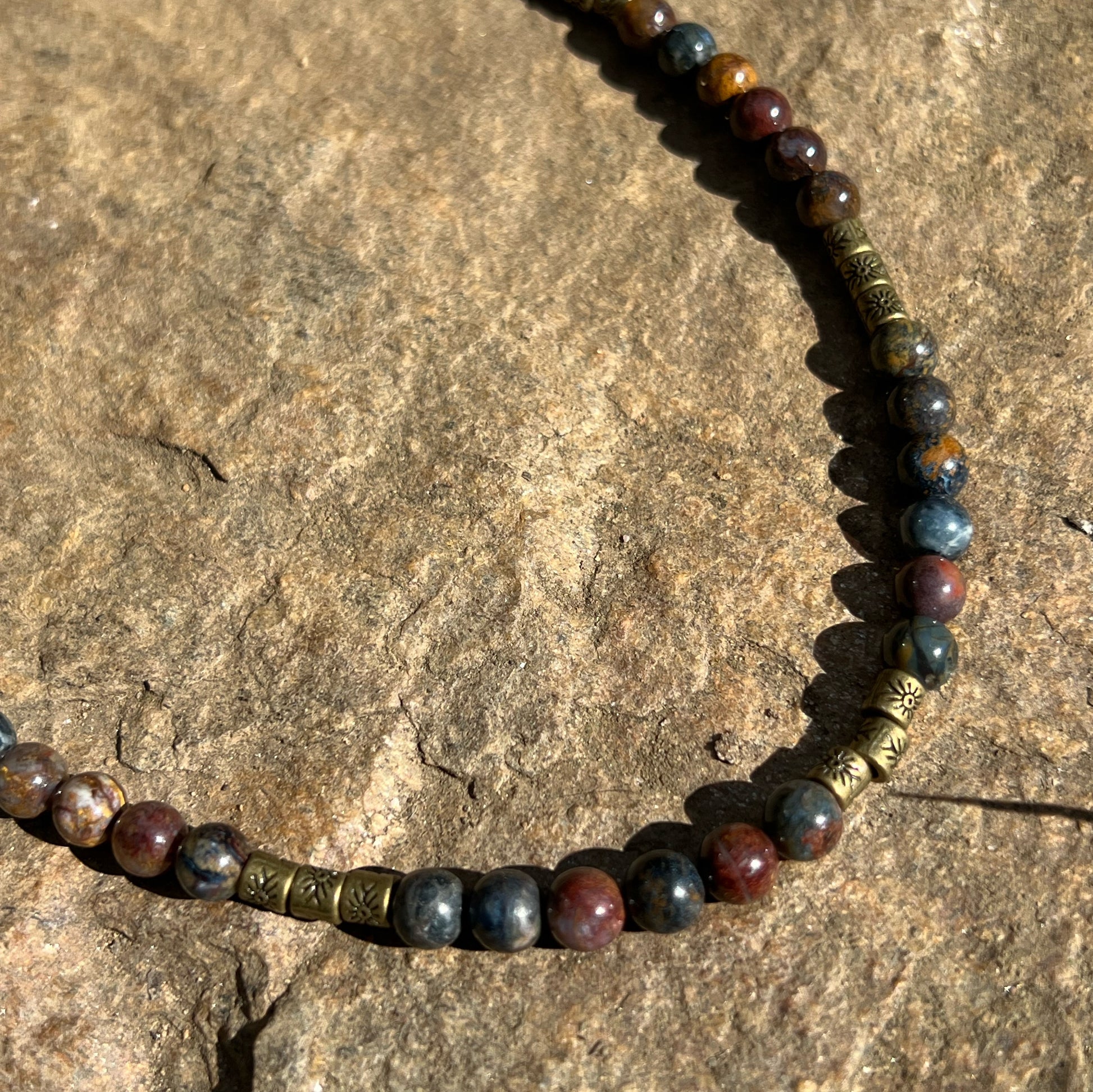 Pietersite with Brass Beaded Necklace with Brass Clasp Jewelry