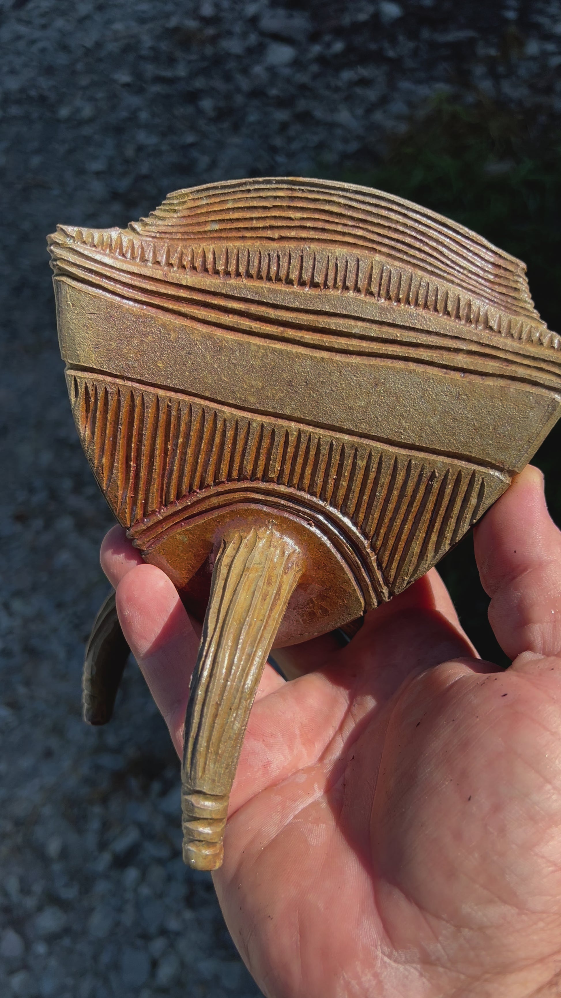 Wood Fired Handmade Pottery Triptych Footed Vessel
